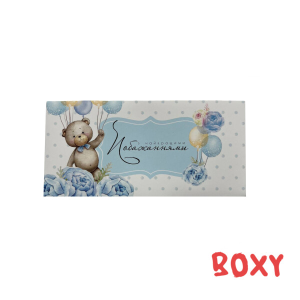 Конверт "З найкращими побажаннями" ведмедик блакитний