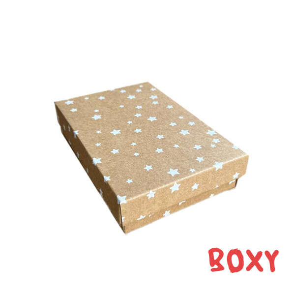 Коробка 110*180*40 мм (зірки) білі на крафті