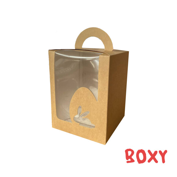 Коробка 140*140*180 мм (з вікном крафт) пасхальна з кроликом