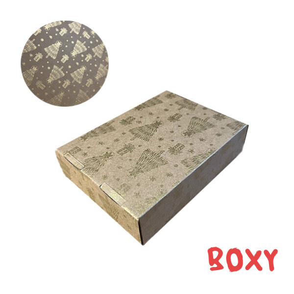 Коробка 150*115*35 мм (ялинки) золоті на крафті