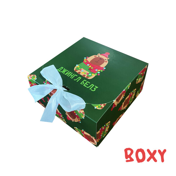 Коробка 150*150*70 мм без стрічки (новорічна) Капібара