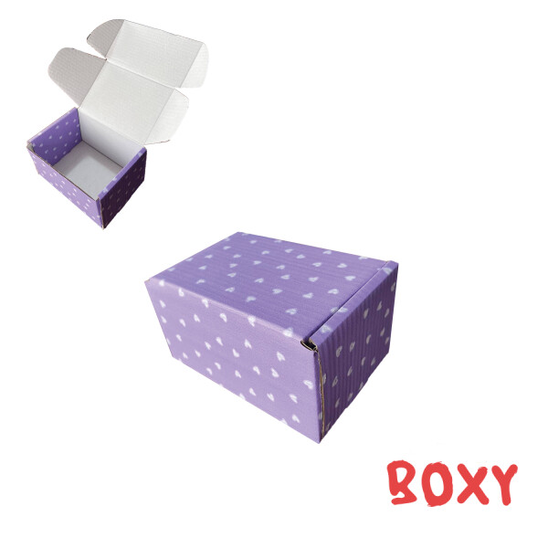 Коробка 170*120*100 мм (повна заливка) лавандова + (міні серця) білі