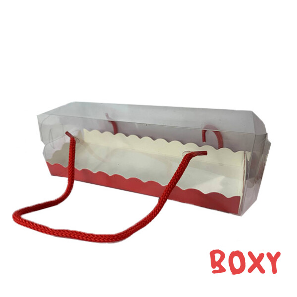 Коробка 185*65*65 мм (прозора кришка) червона зі шнурівкою