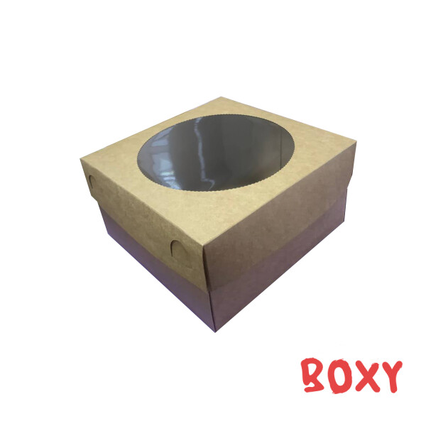 Коробка з хром-ерзацу, з вікном, крафт, розмір: 200*200*150мм. Конструкція кришка+дно.