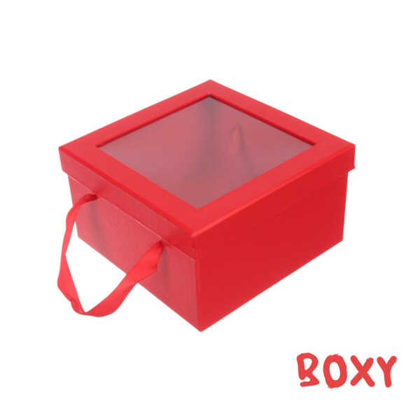 Коробка 210*210*110 мм (палітурна) з вікном червона