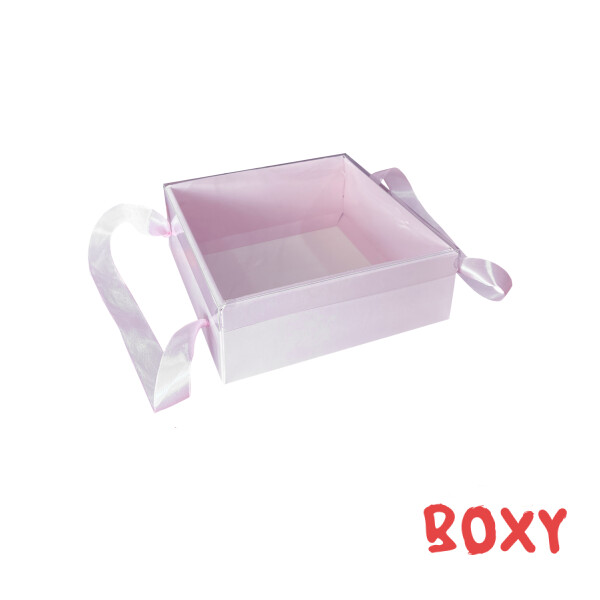 Коробка 210*210*75 мм (з прозорою кришкою) рожева