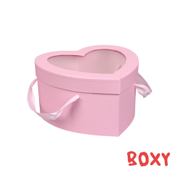 Коробка 225*215*110 мм (у формі серця) з вікном рожева