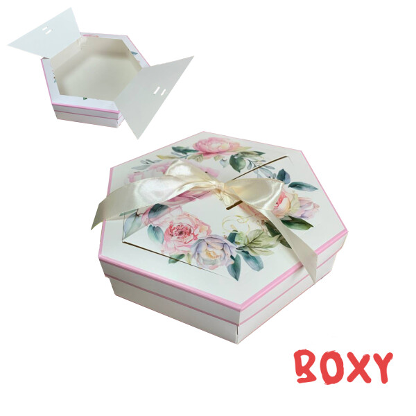 Коробка 235*235*60 мм (з вікном) піони БЕЗ СТРІЧКИ