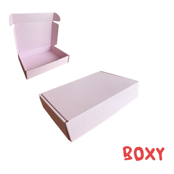 Коробка з гофрокартону, з друком, розмір: зовнішній - 240х170х50 мм., внутрішій -230*160*50 мм. Конструкція виробу - самозбірна. Верх виробу - повна заливка пан.670 (ніжно-рожева). Середина виробу - повна заливка пан.670 (ніжно-рожева).