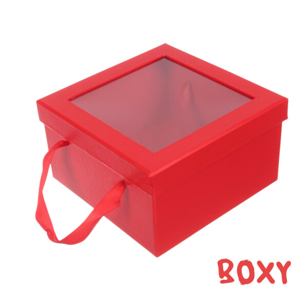 Коробка 245*245*120 мм (палітурна) з вікном червона