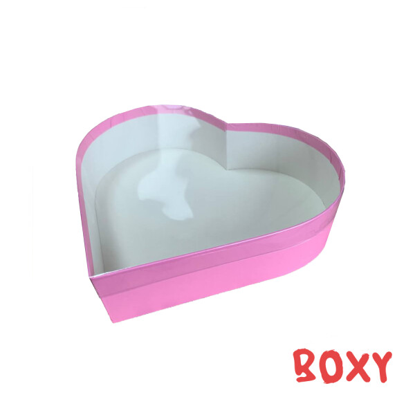 Коробка 250*230*60 мм (у формі серця) прозора кришка рожева