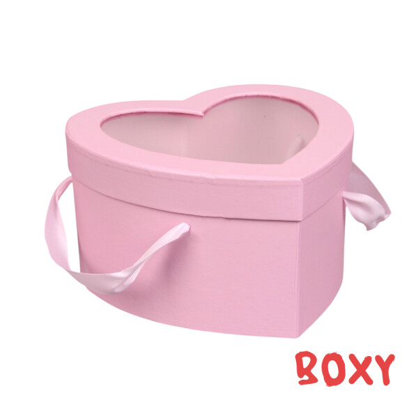 Коробка 265*255*120 мм (у формі серця) з вікном рожева