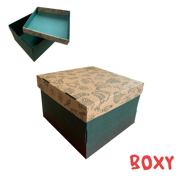 Коробка з мікрогофрокартону, розмір 300*300*200 мм, конструкція - кришка/дно, марка картону Т22ЕЕ (Е). Пантон 562С (зелений).