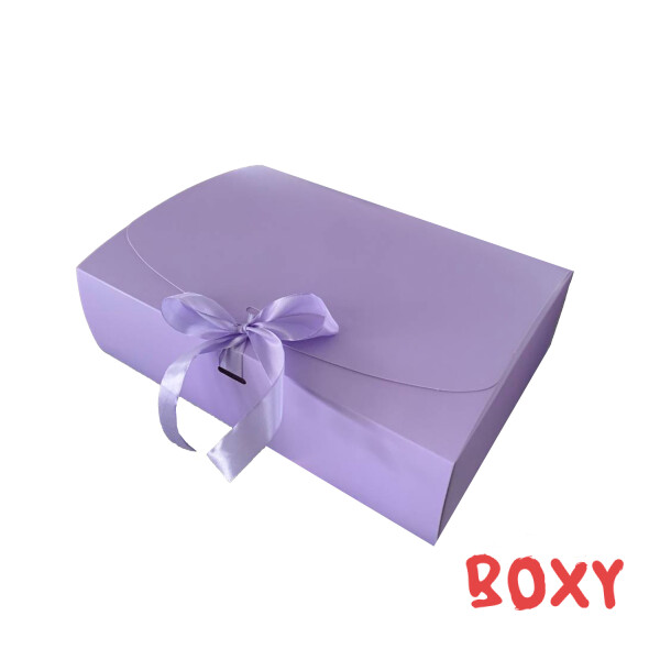 Коробка 330*230*90 мм лавандова зі стрічкою