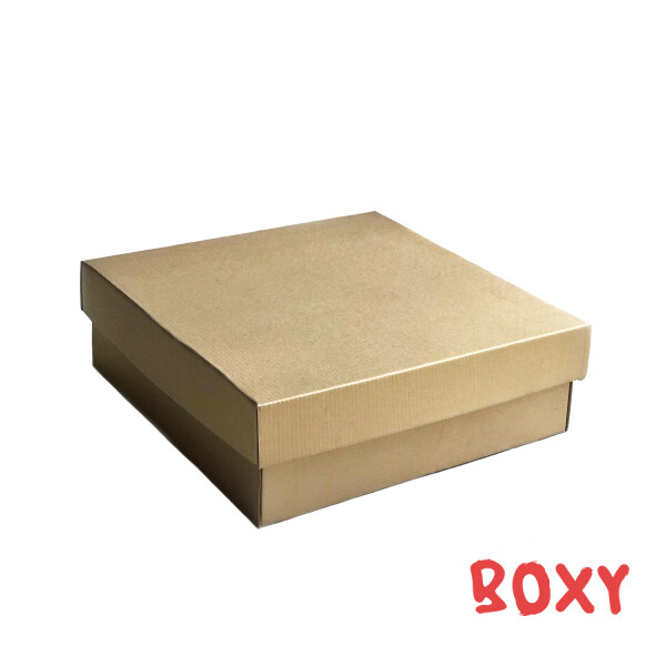 Коробка з мікрогофрокартону, розмір: 330*330*100 мм., пантон - золото, марка картону Т-23БЕМ (Е). Примітка : Оброблена спеціальним напиленням від якого частково може залишатись фарба. Нова конструкція!