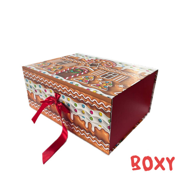 Коробка 390*290*180 мм (самозбірна) "Печиво-будиночок" червона