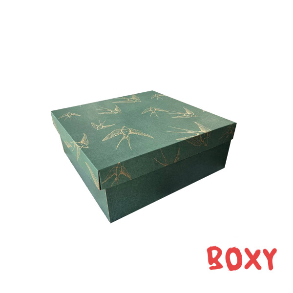 Коробка 400*400*150 мм (повна заливка) темно-зелена + (ластівки) золото
