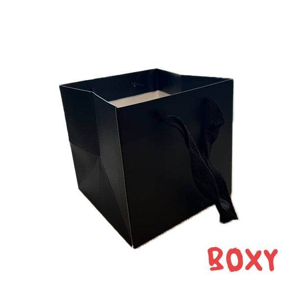 Картонний пакет, з ручками, колір - чорний, розмір - 150*150*150 мм.