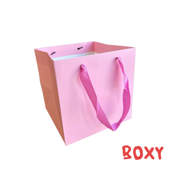 Картонний пакет, з ручками, колір - рожевий, розмір - 200*200*200 мм.