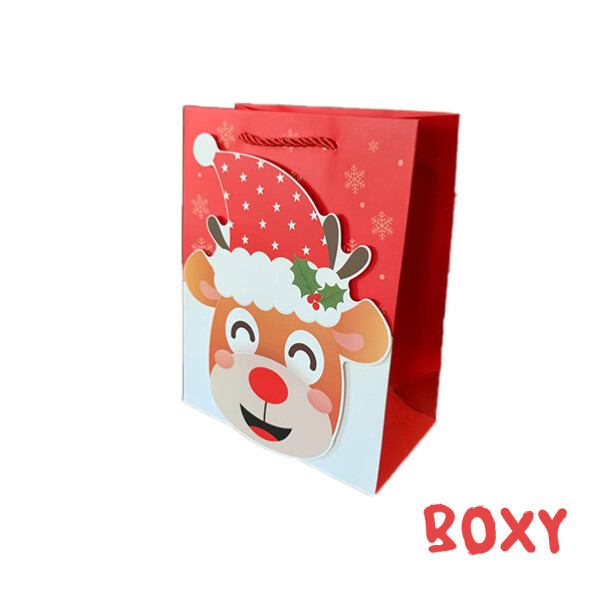 Пакет 230*180*100 мм «Оленя» біло-червоний