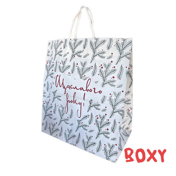 Пакет паперовий, з крученими ручками, з друком, розмір: 350*320*170 мм. Папір 100г/м2.