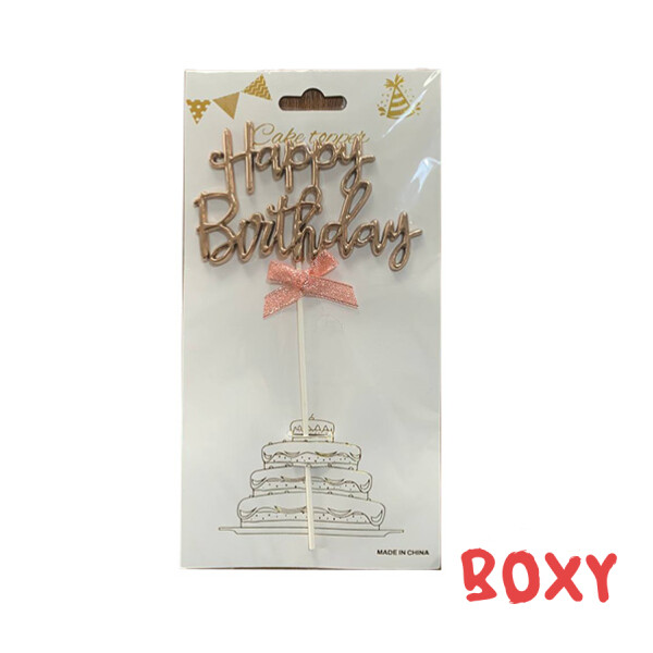 Топер в торт "Happy Birthday" рожеве золото