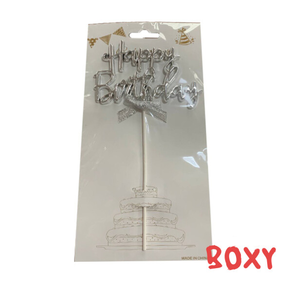 Топер в торт "Happy Birthday" срібло